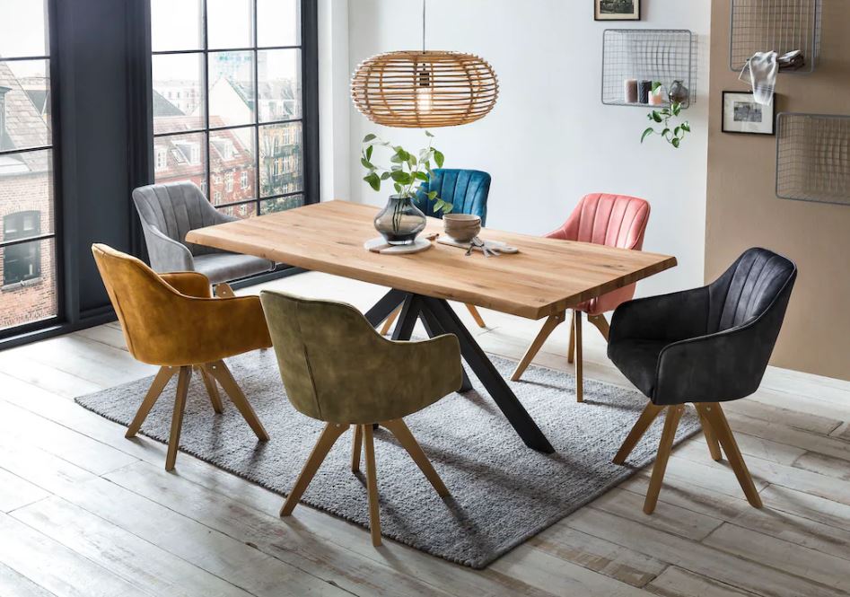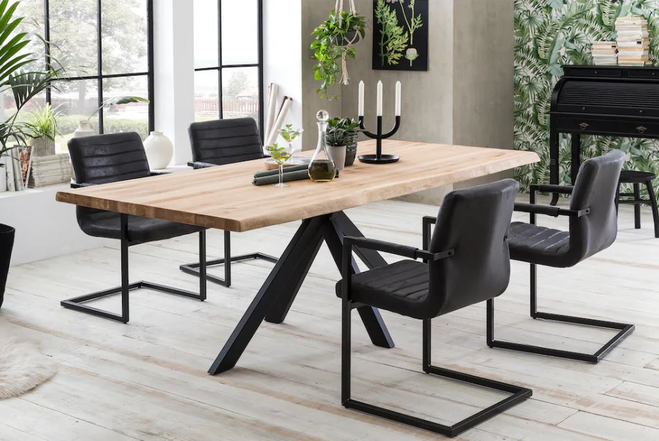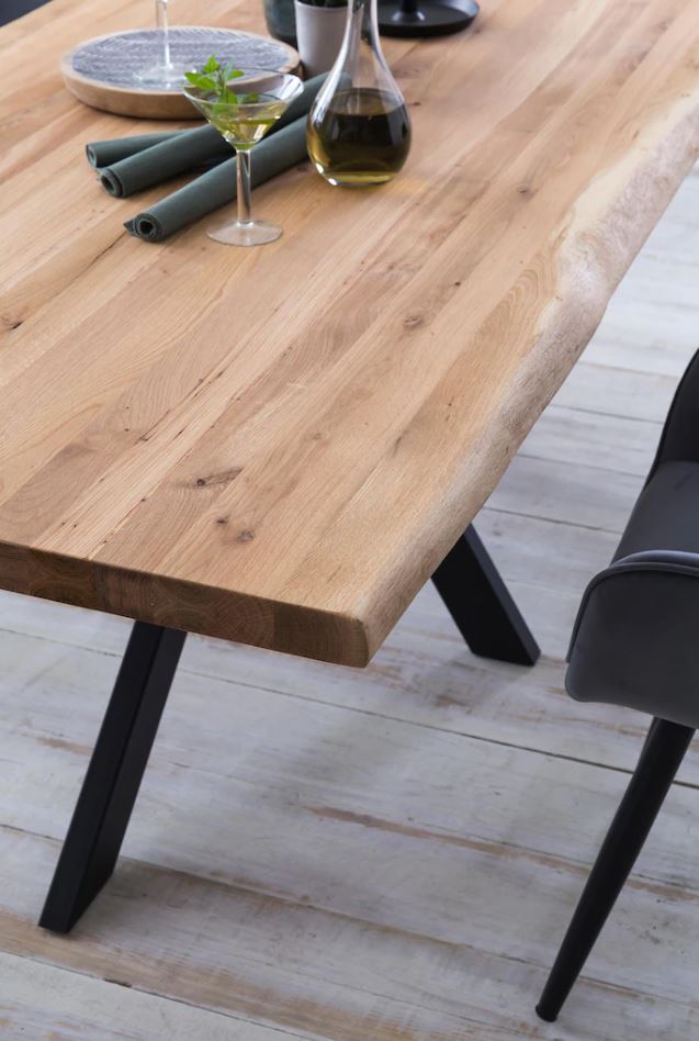 Masa de dining din stejar masiv este o piesă de mobilier elegantă și durabilă. Blatul mesei este confecționat din lemn de stejar masiv, oferă o textură naturală și o calitate solidă. Picioarele metalice sunt vopsite în câmp electrostatic, asigură rezistenta și stabilitatea în timp, având totodată un aspect modern și rafinat. Această masă este potrivită pentru diverse stiluri de decor, aducând un aer de eleganță și rafinament în orice încăpere.