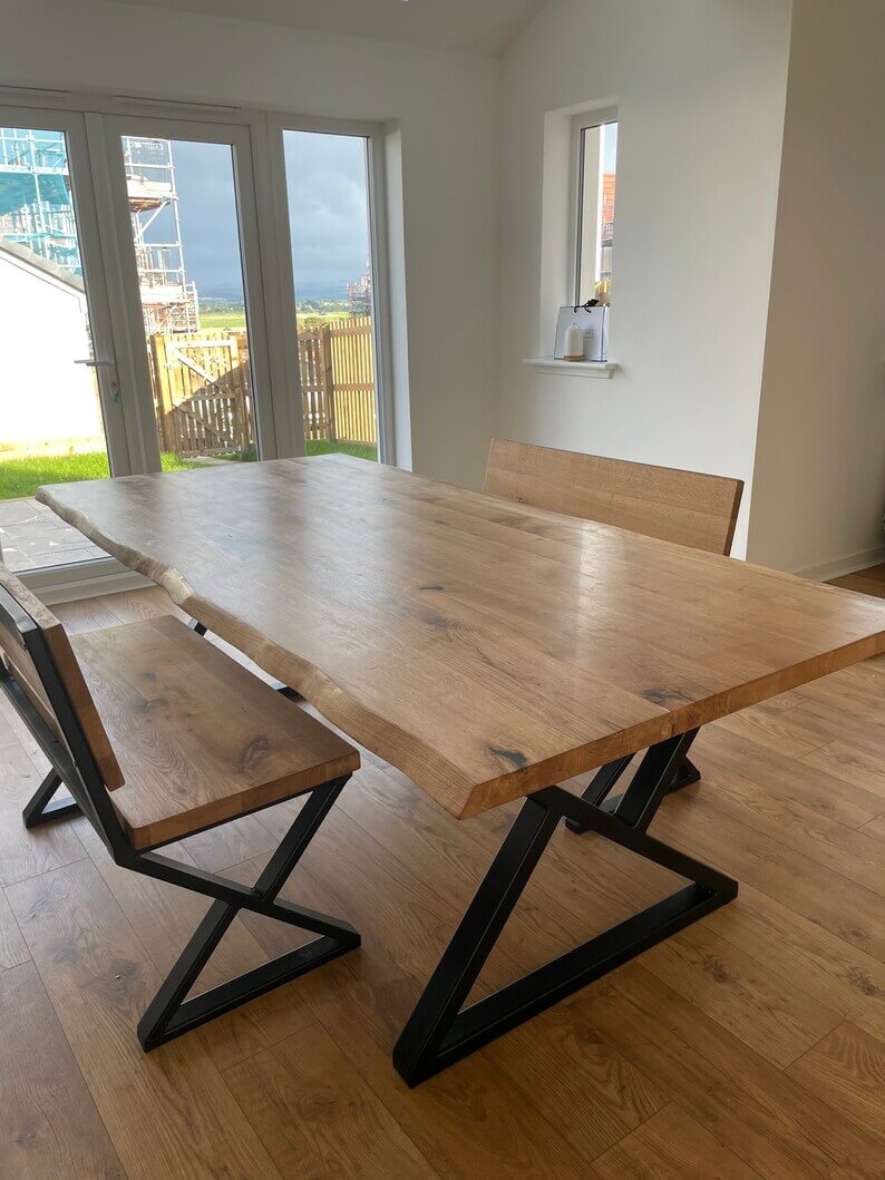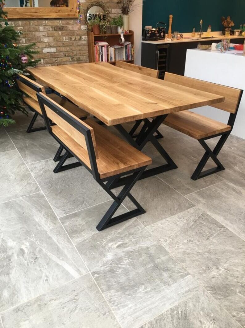 Masa de dining din stejar masiv este o piesă de mobilier elegantă și durabilă. Blatul mesei este confecționat din lemn de stejar masiv, oferă o textură naturală și o calitate solidă. Picioarele metalice sunt vopsite în câmp electrostatic care asigură rezistenta și stabilitatea în timp, având totodată un aspect modern și rafinat. Această masă este potrivită pentru diverse stiluri de decor, aducând un aer de eleganță și rafinament în orice încăpere.